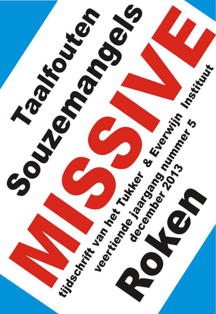 De eerste Missive werd in 2000 uitgebracht. Bij een Instituut hoort een tijdschrift, dachten we. En omdat we wel eens gehoord hadden dat een goede titel vaak een amfybrachus is, zoals De Vólkskrant, drie lettergrepen met het accent op de tweede, kwamen we al snel op de naam Missive. Je spreekt het dus uit zoals je het schrijft. Het is een Frans woord voor dienstbrief, al weet ik niet precies wat een dienstbrief inhoudt. Ik ben voor de dienst afgekeurd, vandaar.