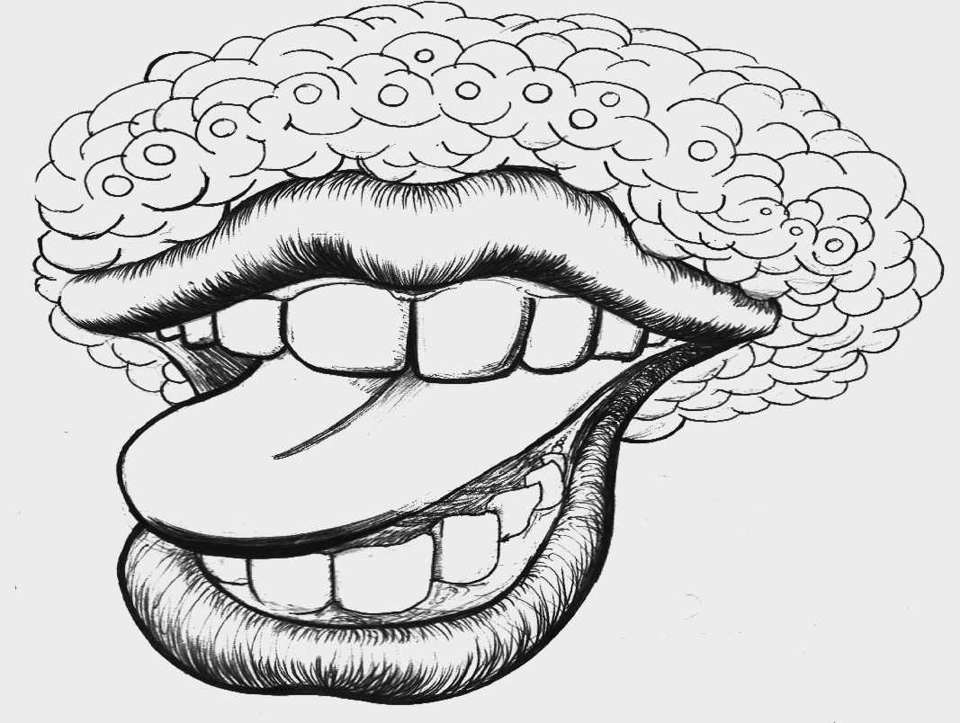 Kaal doorEloy BGM Everwijn Tekening Sjel Musters U ziet hier mijn binnenkant Van kalk, ivoor en holle gaten De rest, die heb ik weggelaten De schedel is nu onbemand Mijn hersens zijn in onderpand