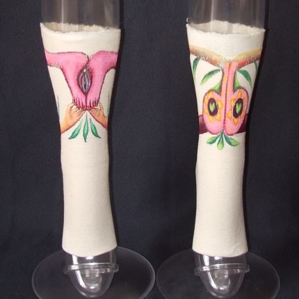 Yvonne Beelen (1971) – Gebreide +Vulva’s Poesjes paradijs (katoen, viltstiften)