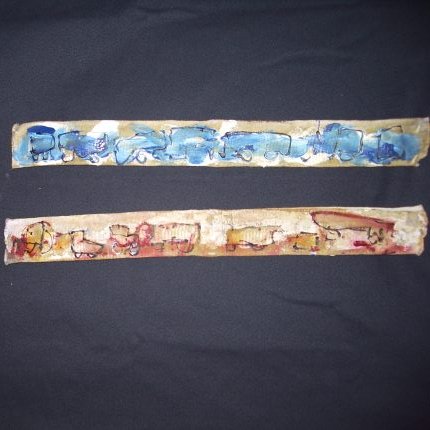 Astrid Meijer (1959) – Hidden Tools (inktpatronen, potloodstompjes, bandelastiek, textielverf)