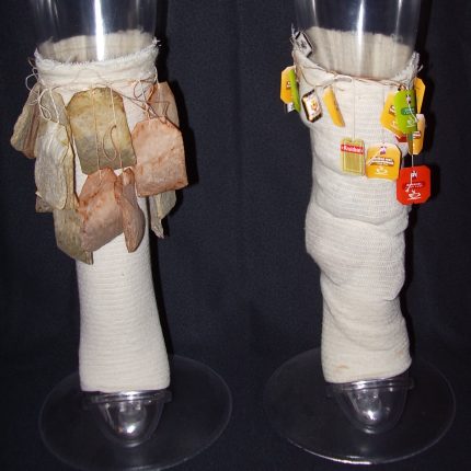 Steunkousen zijn lelijk, daar heb ik iets mee. En met andere belangrijke materialen zoals gebruikte theezakken, wat is mooier?