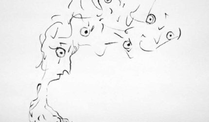 Tekening Raph de Haas Mijn hoofd zit vol met eigen ikken Ik poog ze stuk voor stuk te temmen Anders gaan ze mij nog overstemmen Al dat schreeuwen, al die blikken Mijn hoofd is niet voor bangeriken