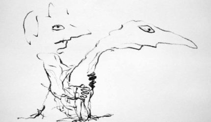 Tekening Inez Odijk Ik was op vlucht voor vele honden Ik ben de struiken ingegaan Na jaren zoeken bleef ik staan Ik zag mezelf zo licht bevonden