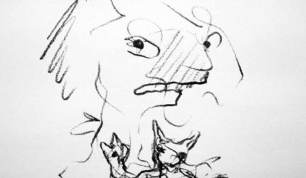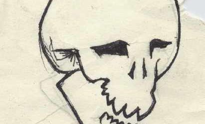 Tekening Sjel Musters U ziet hier mijn binnenkant Van kalk, ivoor en holle gaten De rest, die heb ik weggelaten De schedel is nu onbemand Mijn hersens zijn in onderpand